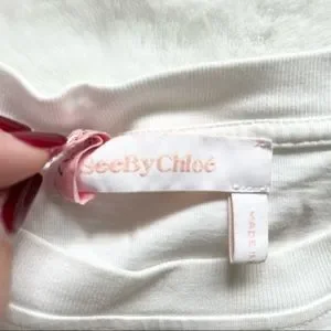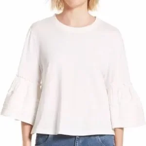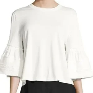 SEE BY CHLOE CREWNECK BELL SLEEVE COTTON TOP Size Small Chic Stylish MINIMALIST