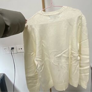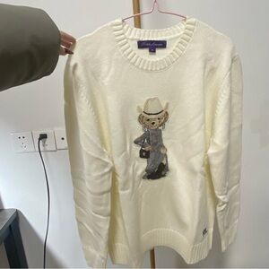 Charming cream sweater featuring a bear motif. Crew neck design. Perfect for casual wear.