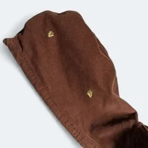 • Color: Rich chocolate brown with gold leaf embroidery