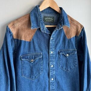 Rare 90s Vintage Ralph Lauren Polo Country Denim Suede Shirt XL Western Rugged