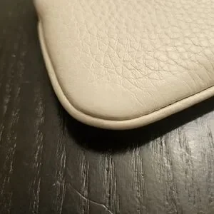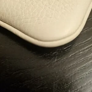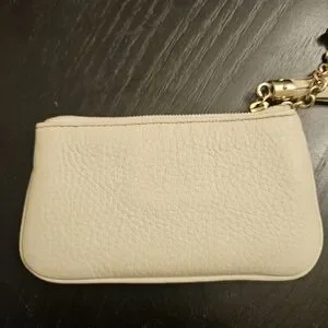 Authentic Gucci Soho leather key pouch in beautiful cream pebbled leather with gold hardware and signature embossed GG logo.
