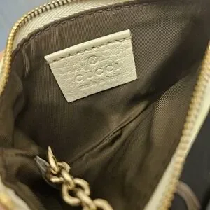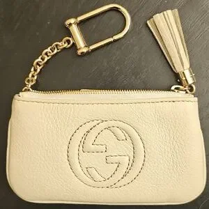 Gucci Soho Leather Tassel Key Pouch Cream GG Logo Authentic