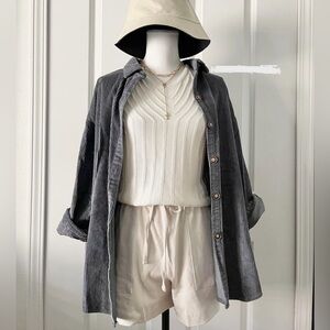 New Slate Blue Gray Corduroy Oversized Button-Up Shirt/shacket