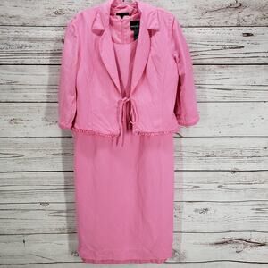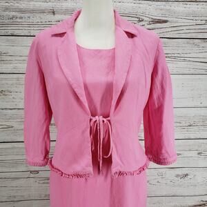 Positive Attitude Pink Linen Blend Sheath Dress Ruffle Trim Jacket Set Size 6