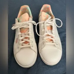 Limited edition Stan Smith Adidas sneakers! Gently worn size 5.5 but can fit a 6.5/7 in women’s.