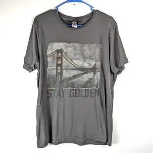 • Features: Soft vintage-style graphic, Golden Gate Bridge print, “Stay Golden” text, short sleeve, crewneck