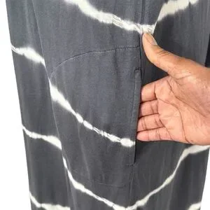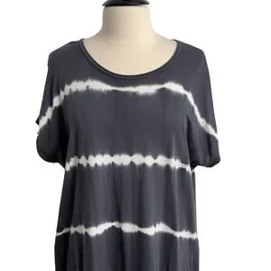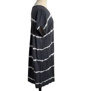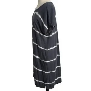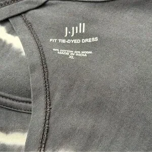 J. Jill Fit Tie Dye Knit Stripe Pattern Shirt Dress Dark Gray and White Colorway