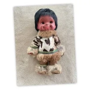 This is a classic vintage Alaska souvenir doll, increasingly collectible due to real fur clothing and solid condition. A great addition to a vintage doll, Arctic, or mid-century souvenir collection.