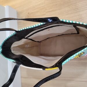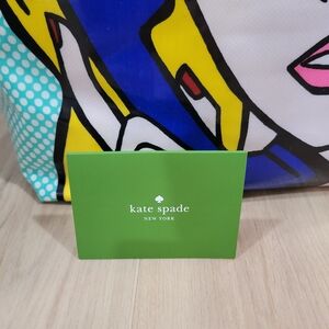 This stylish Kate Spade 'But Chad' new tote bag features vibrant colors and black handles. Perfect for adding a bold statement to any outfit!