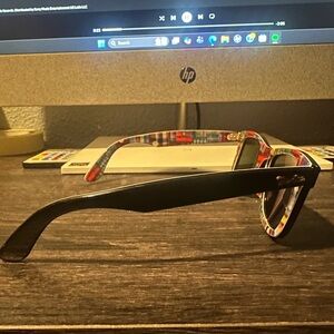 Chic Ray-Ban Wayfarer sunglasses with a black frame and multicolor accents. Perfect for any style.