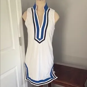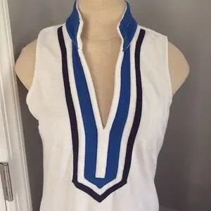 Excellent condition, Boston Proper Loop Terry Color Block Tunic Dress Size XS. Color white, royal blue, and navy blue. 80% cotton and 20% polyester – hand wash cold. See pictures for length and armpit to armpit measurements.