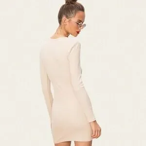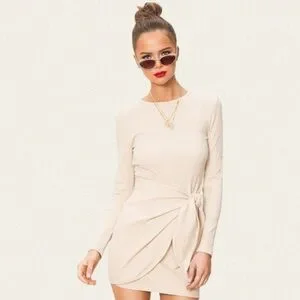 Long-sleeve bodycon mini dress by Superdown (Revolve). Featuring a faux wrap design and super soft ribbed cotton blend fabric.