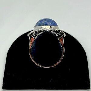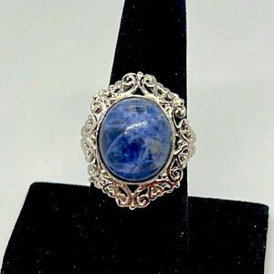 Beautiful Vintage Silver Ring With Blue Marbled Stone