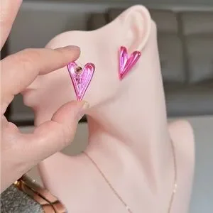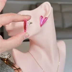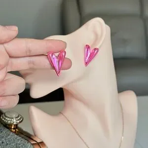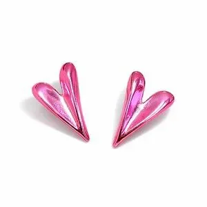 Chic metallic pink heart earrings. Perfect for adding flair.