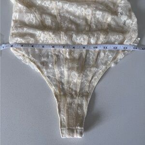 Delicate lace bodysuit with intricate detailing. Features a soft cream hue. Perfect for intimate wear.