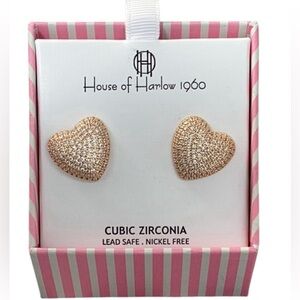 New In Gift Box House of Harlow 1960 Gold Heart Stud Earrings Cubic Zirconia
