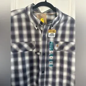 Carhartt NWT Men’s Force Relaxed Fit Short Sleeve Button Front Plaid Shirt