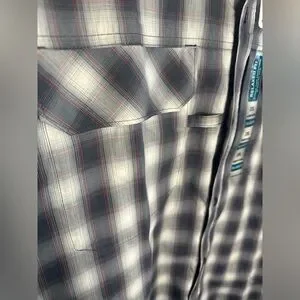 You can't control the weather, so you might as well dress for it. The quick-drying design of this men's lightweight plaid shirt sheds sweat to regulate your body temperature on the job or on the boat. A mesh-lined vent adds breathability, while stain-resistant fabric keeps the shirt looking good.