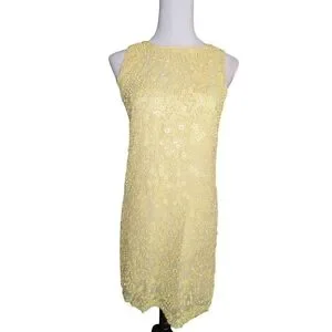 *cocktail party formal wedding guest beaded sequin shift dress sleeveless yellow spring summer occasion wear*