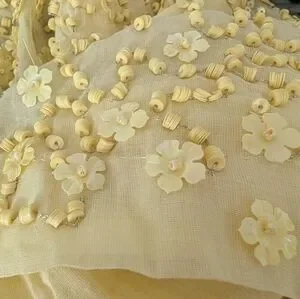 100% cotton with mesh base for beadwork. Specialist dry clean only.