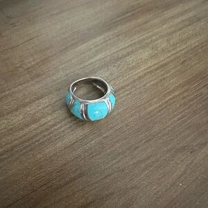 Elegant turquoise ring set in silver, perfect for adding a pop of color to any outfit.good condition