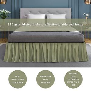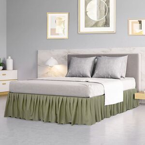 Ruffled Bed Skirts Polyester Brushed Platform 16inch Drop Full Olive Green