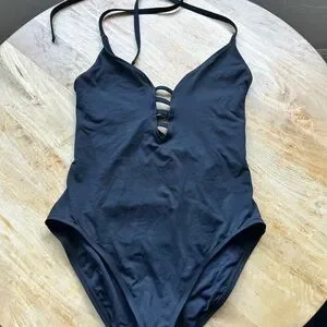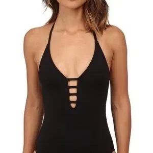 La Blanca Goddess Keyhole Black Halter One-Piece Swimsuit