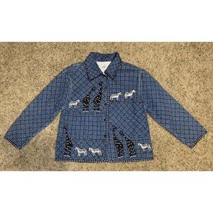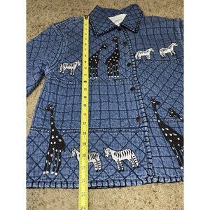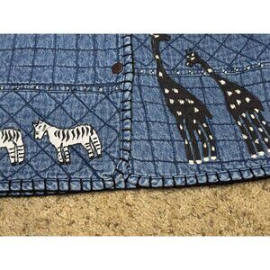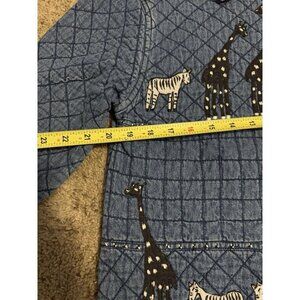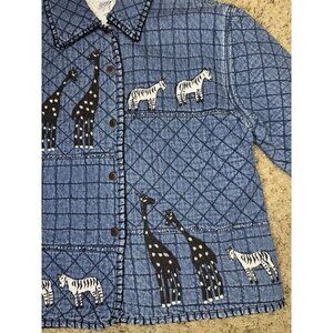 Vintage 90s Giraffe Denim Jacket Womens LARGE Blue Quilted Safari Travel Animal