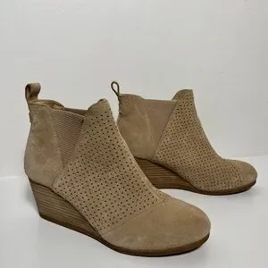 TOMS Kelsey Suede Wedge Booties Taupe Perforated Ankle Boots Women’s Size 9