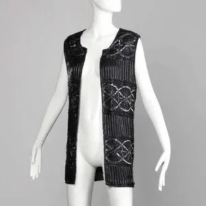 Mary McFadden Elegant Black Sequin Vest