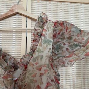 Charming floral maxi dress with layered ruffles. Vibrant and elegant design. Ideal for special occasions.