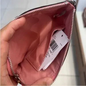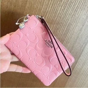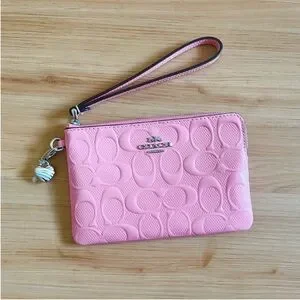 Coach Corner Zip Wristlet In Signature Leather With Heart Charm