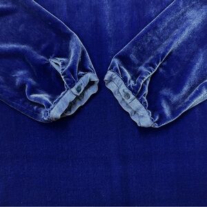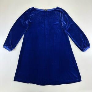 Eileen Fisher blue velour dress Medium round neck Aline silhouette long sleeve