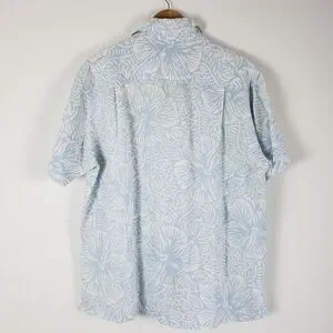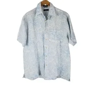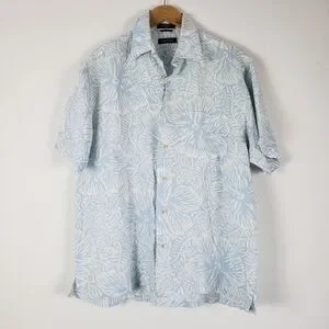 This Nautica linen tropical Blue Palm button-down collar top is a great addition to any wardrobe. Has general wear, please see photos for details.