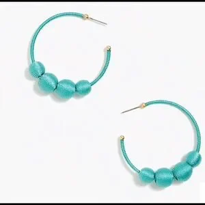 J Crew Hoop Earings ▪️Brass acrylic thread ▪️Diameter: 2” ▪️NWT ▪️Aqua sea color