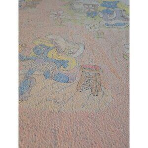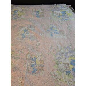 Vintage 80s The Smurfs Cartoon Pink Blanket Smurfette