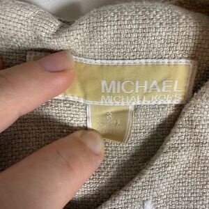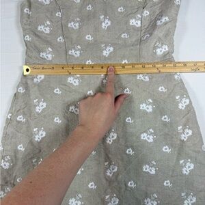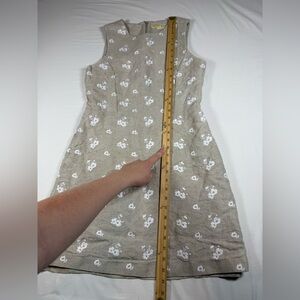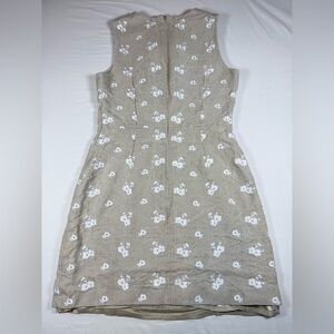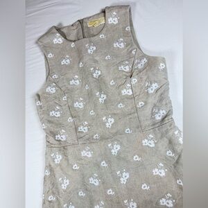 Linen mini dress by Michael Kors. In a tan coloring with white stitched flowers.