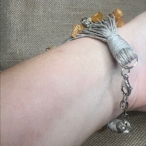 Chic Multi-Strand Amber Bracelet and Natural Linen cord