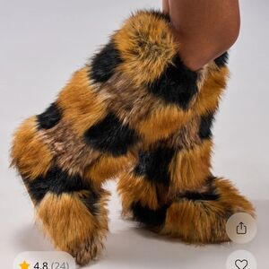 Step into luxury with these faux fur moccasins. Featuring a striking black and brown design, these shoes offer both style and comfort. Perfect for adding a bold touch to any outfit.