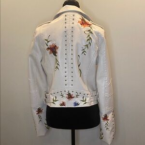Embroidered faux leather moto jacket with studs