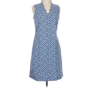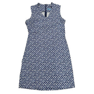J. McLaughlin Bird Print Sleeveless Office Work Dress size 12 Blue/White A004005