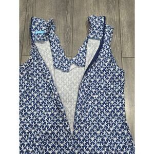 J. McLaughlin Bird Print Sleeveless Dress size12 Blue/White