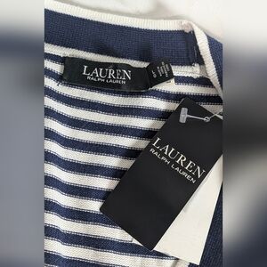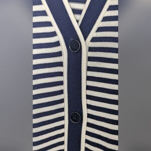 NWT Lauren Ralph Lauren Long Striped Silk Blend Cardigan Navy Nautical Size L