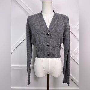 Reformation Hana Ribbed Cropped Cardigan Sweater 100% Cashmere Gray Size Small