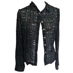Size 10 vintage Y2K French Connection velvet burnout sheer top with a geometric pattern