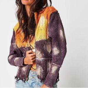 Free People Horizon Line Cardi Zip zip Cardigan Sweater Small Tie Dye