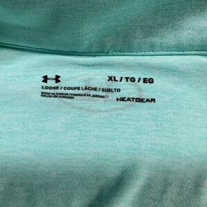 The Under Armour HeatGear 1/2 Zip Pullover in Light Blue XL is a women's activewear top designed for a loose fit. With a solid color and classic/fitted sleeve type, this pullover features a mock neck and zip closure for easy wear. Made from knit fabric, it is lightweight and perfect for the seasons of summer, fall, and spring. The pullover also includes the signature Under Armour HeatGear technology, making it a stylish and functional addition to any workout wardrobe. See photo tiny little mark. May wash out otherwise wear as is without it being noticed.