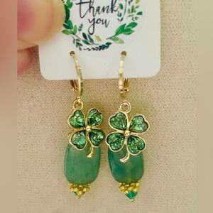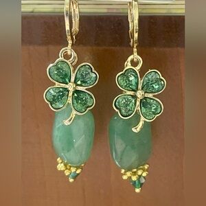 Add a touch of charm with these chic clover drop earrings, featuring a vibrant green gem lucky clover and genuine green aventurine stones. Accented with gold findings. May the luck o’ the Irish be yours!