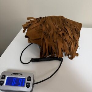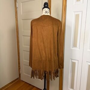 BCBGeneration Women Medium Cognac Faux Suede Tan Boho Fringe Open Blazer Western