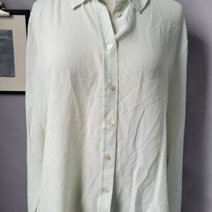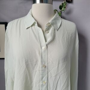 Everlane Clean Washable Silk Relaxed Button Up Shirt Light Green 14